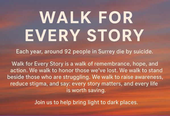 Each year, around 92 people in Surrey die by suicide. Behind every number is a person — a story, a family, a friend, a life that mattered.